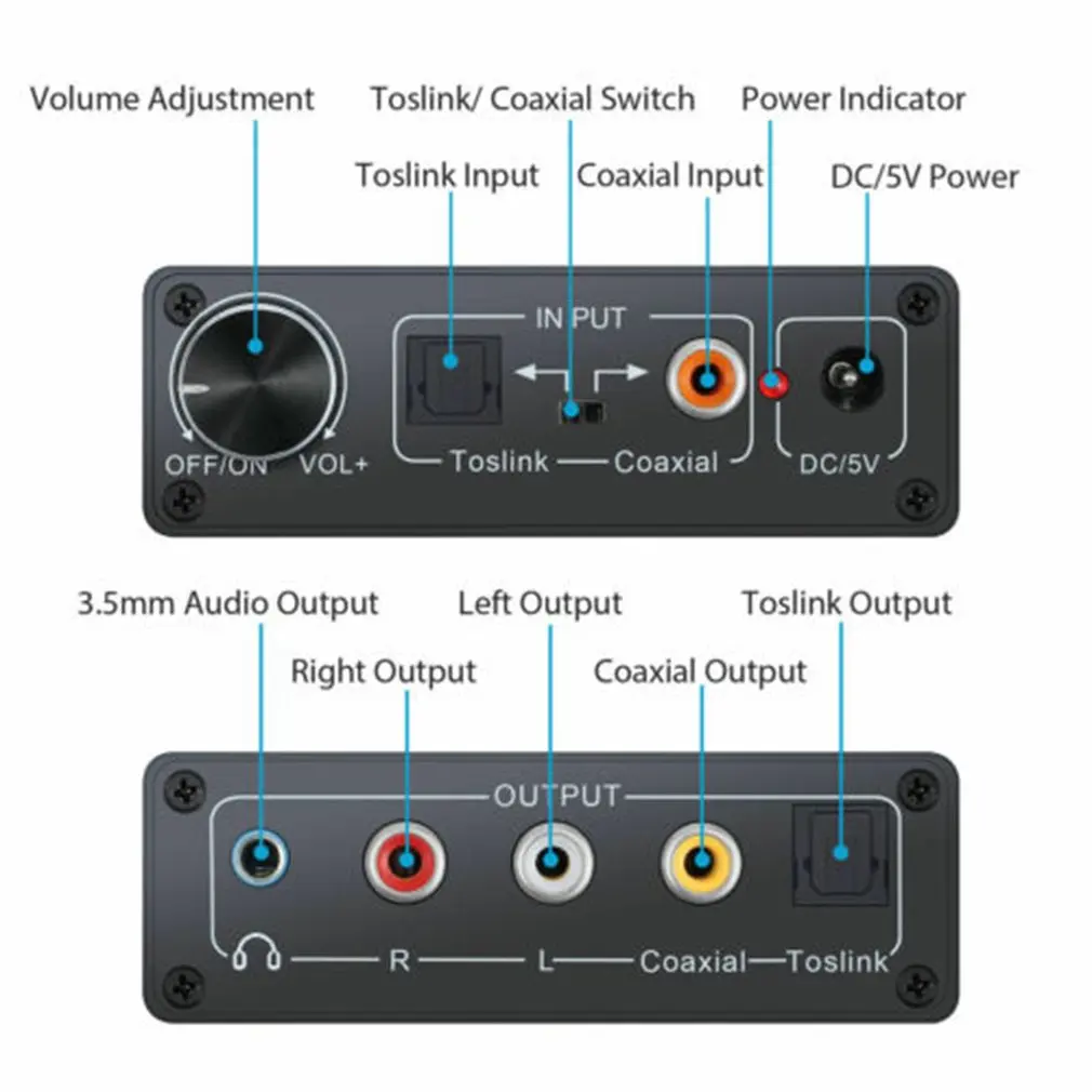 Most effective Digital to Analog Audio HiFi Digital Optical Coaxial to TosLink Analog LR RCA 3.5mm Jack Converter
